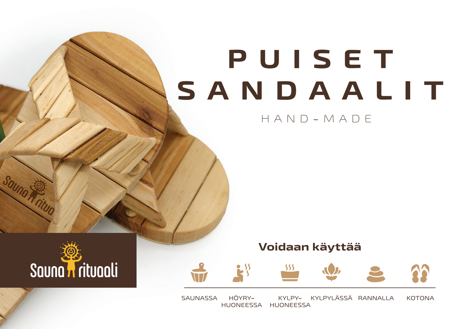 Saunarituaalin puiset sandaalit ovat uniikit ja monipuoliset. Tossut ovat tehty käsityönä Ukrainassa. Tuote on saatavailla vain rajoitetun ajan, käy nappaamassa omasi nyt!